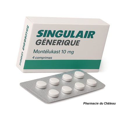 La version générique de Singulair contient le même principe actif, Montelukast, et respecte les mêmes critères de qualité pharmaceutique. Acheter un générique vous permet de commander un produit bioéquivalent, homologué en France et dans l’Union Européenne, à un tarif jusqu’à 70 % inférieur au médicament princeps.